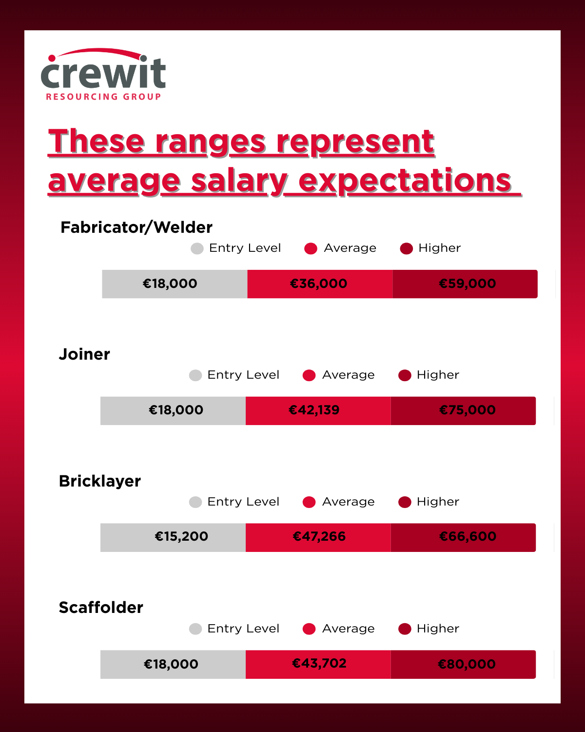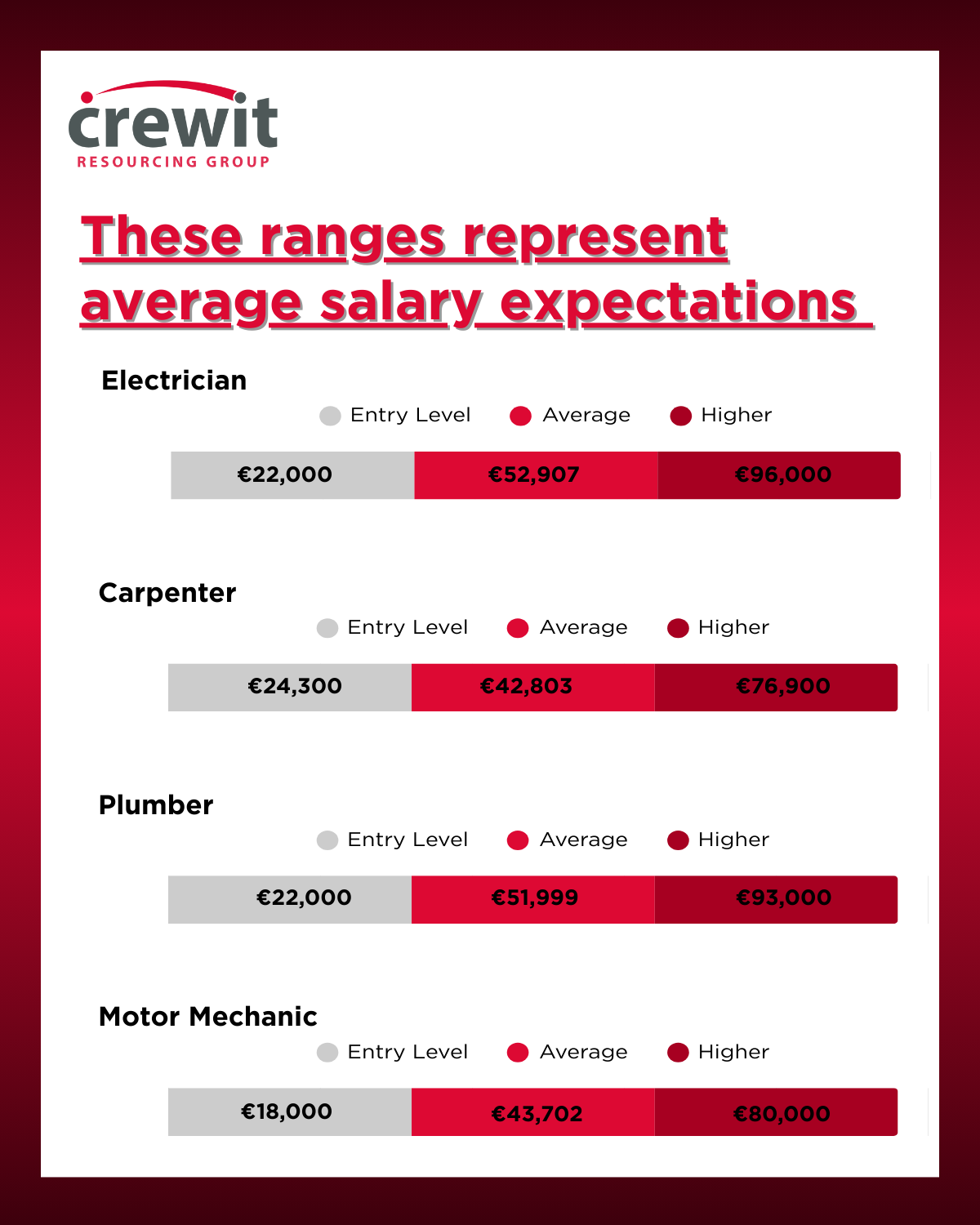 The data in the graphs below is based on LinkedIn Hiring Insights and covers key trades including Electrician, Plumber, Carpenter, Joiner, Mechanic, Fabricator/Welder, Bricklayer and Scaffolder. Salary ranges are shown across entry level, average and higher experience levels, offering a clear view of how earnings progress as skills develop and experience increases