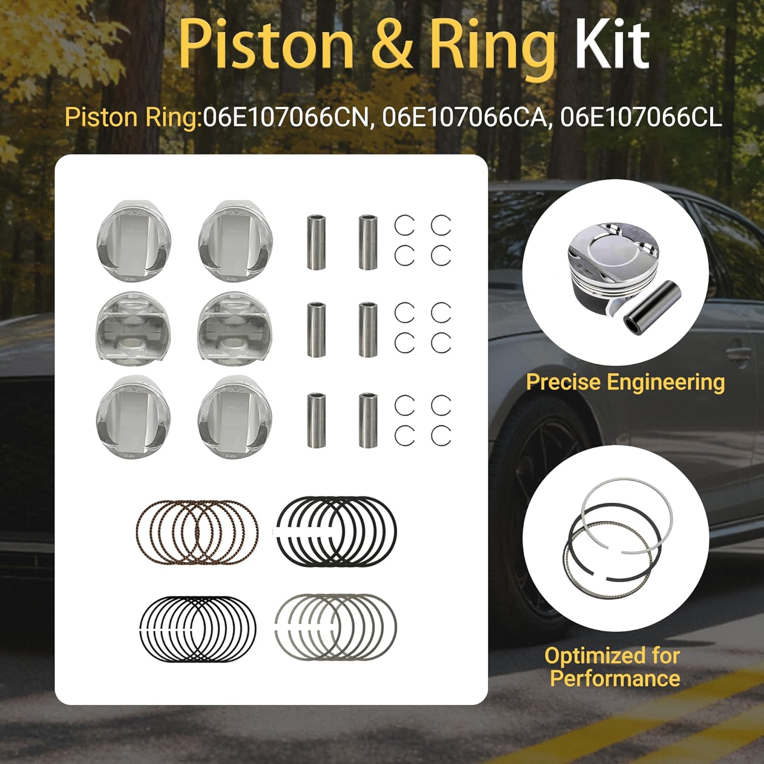 Fitment: Fit For Audi Q5 V6 3.0L CNCD/CNCE TFSI 2013-2017 Fit For Audi S5 V6 3.0L CTSA/CTSB TFSI 2010-2017 Fit For Audi SQ5 V6 3.0L CTTA/CTTB TFSI 2014-2017 Fit For Audi A5 V6 3.0L CNCD/CNCE TFSI 2015-2016 Fit For Audi A5 Quattro V6 3.0L CTSA/CNCD TFSI 2012-2016 Fit For Audi Q7 V6 3.0L CTSA/CTSB TFSI 2011-2015 Fit For Audi S4 V6 3.0L CTSA/CTSB TFSI 2010-2015 Fit For Audi A4 Quattro V6 3.0L CNCD/CNCE TFSI 2013-2014 Fit For Audi A6 Quattro V6 3.0L BBJ/BKH/CNCD TFSI 2009-2014 Fit For Audi A7 Quattro V6 3.0L CTSA/CNCE TFSI 2012-2014 Fit For Volkswagen Touareg V6 3.0L CNKA/CTUA TSI 2011-2015 Item Included: 1*Full Gasket Seal Set 1*Piston & Ring Set 1*Crankshaft Main & Con-Rod Bearings Set 1*Head Bolt Set OE Part Number: Full Gasket Set:079103383AQ, 079103383AR, 079103483T, 079103484C Piston:06E107066CN, 06E107066CA, 06E107066CL, 06E107066DN Bearing:06E105561AC, 06E105591AC, 07L105701D Head Bolt:06E103385