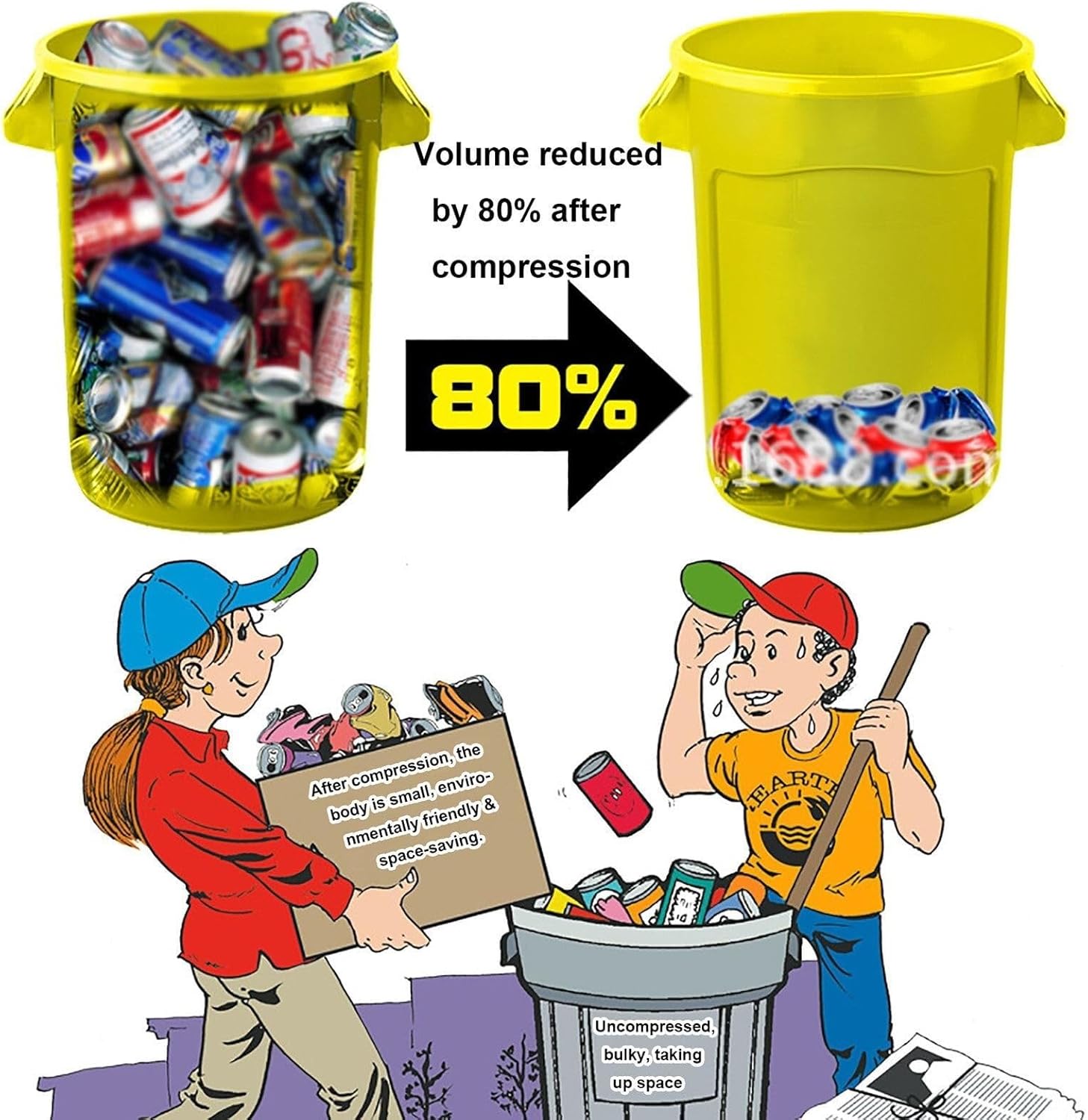 This can crusher can easily crush cans and compress cans to about 20% of their original size to save space in garbage or recycling bins and facilitate recycling by sanitation workers. Suitable for standard 200500ML cans and 200330ML plastic water bottles, compatible with most cans and plastic water bottles on the market.FEATURES:-- Save time and effort and make recycling a breeze.-- Easy and safe to use with just the push of a button.-- High efficiency, the motor rotates at a constant speed and runs smoothly, so you don't have to worry about being pinched if the speed is too fast.-- Easy to recycle and save space in recycling binsSPECIFICATION: Name: Electric Can Crusher Material: Stainless Steel Input Voltage: 100V-240V Port Size: 7.2*3.3Inch Product Size: 43*9*10CmKIND TIPS:1. Due to differences between different monitors, the picture may not reflect the actual color of the item.2. Please allow slight size differences due to different manual measurements.