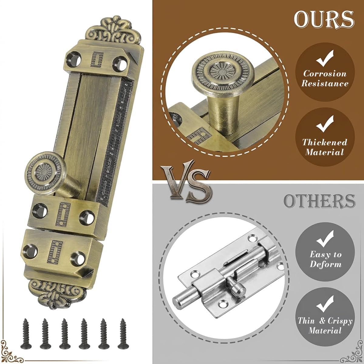 Antique Door Bolt Latch, Ornate Sliding Security Lock for Doors, Cabinets, Gates & Wooden Windows, Decorative Vintage Barrel Bolt Hardware-Bronze,110 x 25 x 26mm