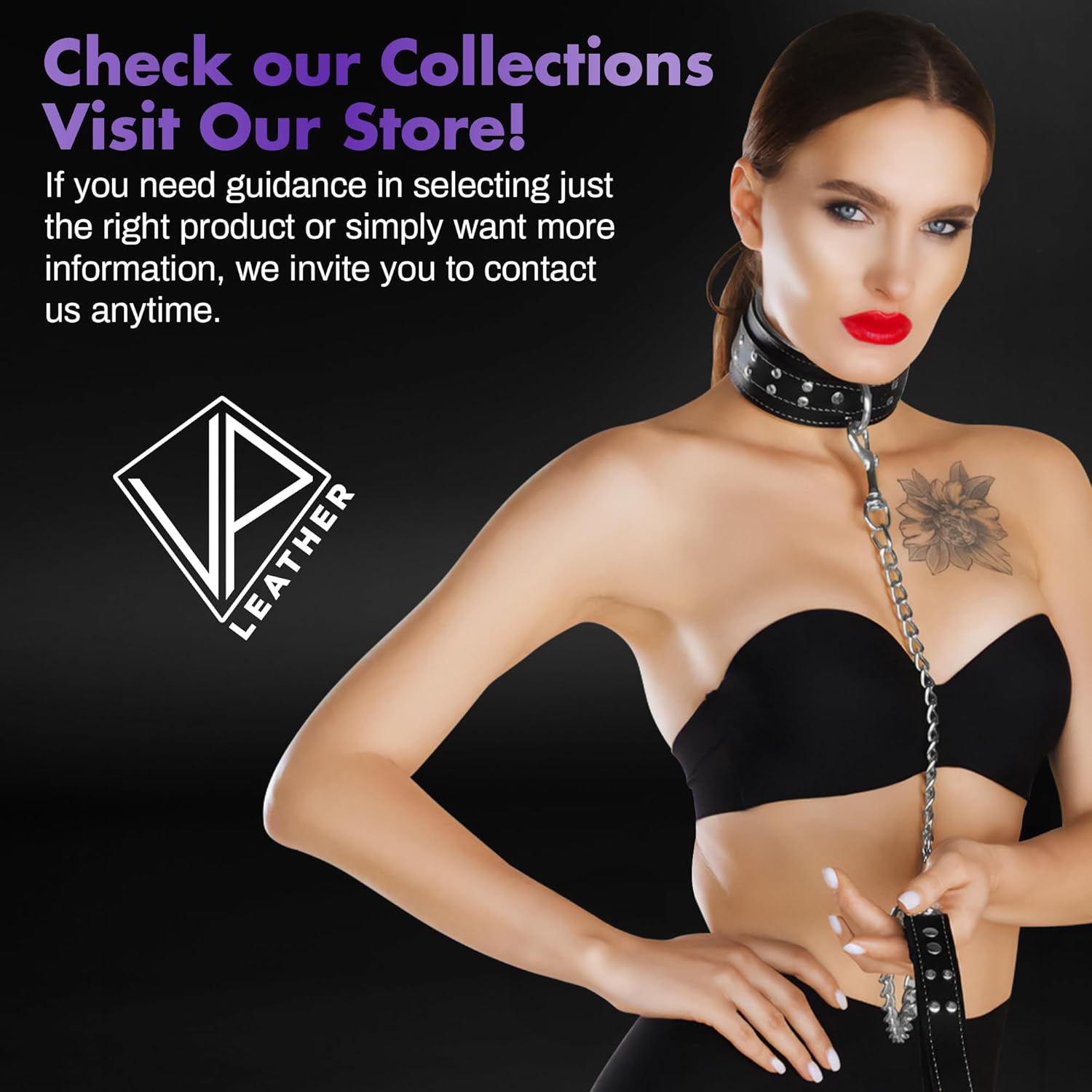 The VP Leather Martin I Collar is a stunning leather accessory, expertly handmade with a blend of top-grain leather and soft lambskin, offering both durability and comfort. This stylish collar features a fashionable design with nickel-plated buckles, eyelets, studs, and O-rings. Ideally sized for neck sizes ranging from 12.5” to 15.5” for small and 15.5” to 18.5” for large, the adjustable Martin I neck collar offers a secure and comfortable fit, making it an ideal choice for any occasion. Crafted from grain leather and soft latigo leather, the Martin I collar is designed for durable wear. The nylon stitching ensures extra durability, while the lambskin handmade lining ensures a luxurious feel. This versatile collar accessory elevates any outfit, whether as a statement piece or part of a more minimalist look. The Martin I collar combines quality, fashion, and comfort, making it the ideal addition to your wardrobe. Treat yourself or a loved one to this timeless collar for humans that’s made to endure.