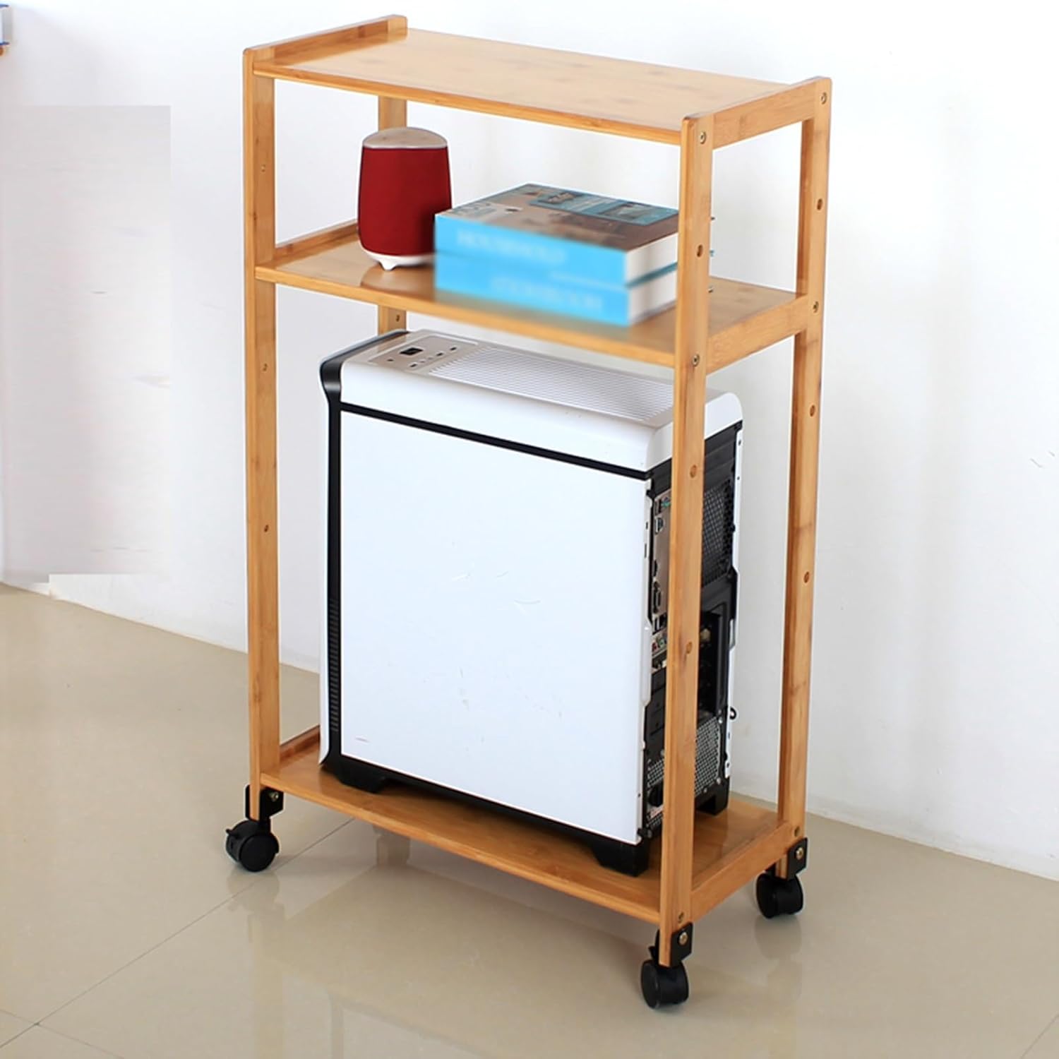 With a generous vertical clearance of up to 85 cm between shelves, this stand offers stable and reliable support for computer towers of various sizes. Please be sure to measure the dimensions of your computer tower to ensure compatibility with this standProduct Specifications:Product Name: Computer Tower Stand / PC Tower StandDimensions: As shown in the imageMade Of: sturdy bamboo frameProduct Colors: color1 / color2Applicable Settings: Offices, Bedrooms, Schools, Internet Cafes, Kitchens, BalconiesPackage Contents:1 x PC Tower StandNotes:1. This product includes only the PC Tower Stand; other decorative items shown in the images are not included.2. Due to manual measurement, the actual product dimensions may vary by 1–2 cm. Please refer to the actual product for exact measurements.3. Due to differences in computer monitors or lighting effects, the actual color may differ slightly from the images shown the product details page. Please refer to the actual product for the true color