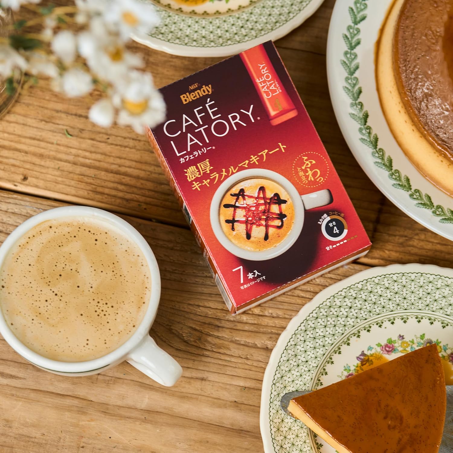 Product Description Crafted with passion and precision by café artisans, Blendy Café Latory is a premium instant stick series that brings the rich flavors of a specialty café to your home—just with one stick. The AGF Blendy Café Latory Rich Milk Café Latte (20 sticks) offers a generous serving of expertly blended deep-roasted coffee and rich, creamy milk. Each individually wrapped stick ensures every cup is as fresh as the first. Experience the luxurious froth and authentic taste the moment you add hot water. Sweetness Level: 3 (compared to other AGF Blendy Café Latory products) Close your eyes and savor a cup worth pausing for. To enjoy iced café latte, simply add half the usual amount of hot water and some ice. Ingredients Creaming powder (contains milk, made in Japan), instant coffee, sugar, dextrin, skim milk powder, salt / milk protein, pH adjuster, flavoring (milk-based), stabilizer (modified starch), sweeteners (aspartame, L-phenylalanine compound, acesulfame K), emulsifier, silicon dioxide, seasoning (amino acids, etc.) Now also available in the previous edition: Same caramel macchiato taste, but with more sticks inside the box. This version offers better value and is available while supplies last. Search for ASIN: B07Q7VHFXW to find the value pack.